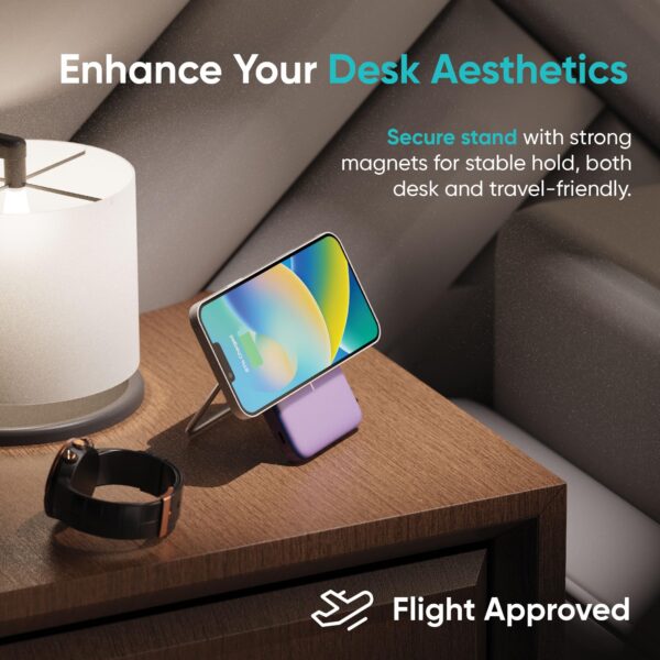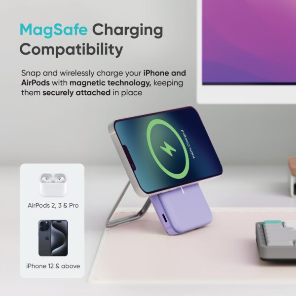 Ambrane 10000mAh MagSafe Powerbank with Stand 22.5W Wired & 15W Wireless Fast Charging Dual Input (Type-C & Lightning) | Triple Output | for iPhone 16/15/14/13/12 & Android Devices (PB11, Purple)