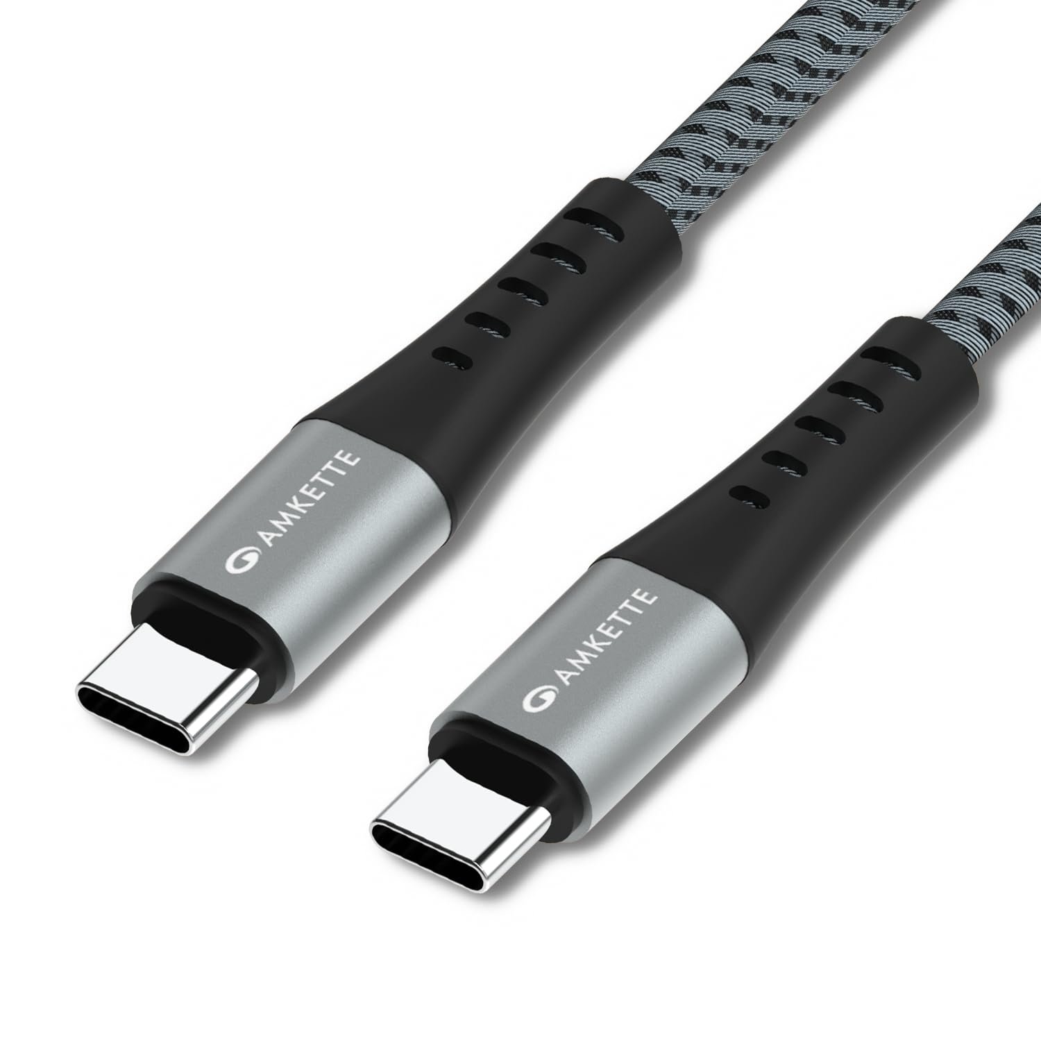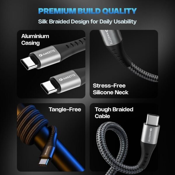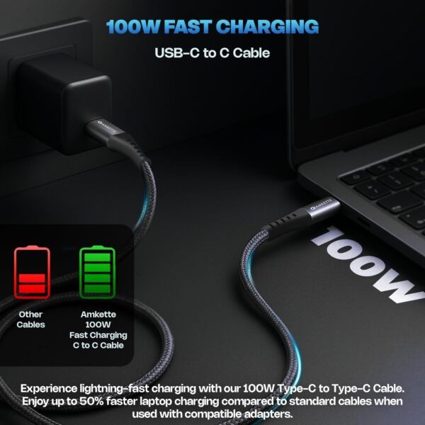 Amkette ChargePro 100W USB Type C to C Cable | Ideal for Laptop Charging | 1.5M Durable Braided Cable with Silicone Reinforced Connectors | Super Fast Data Transfer | Mobile & Laptop Compatible