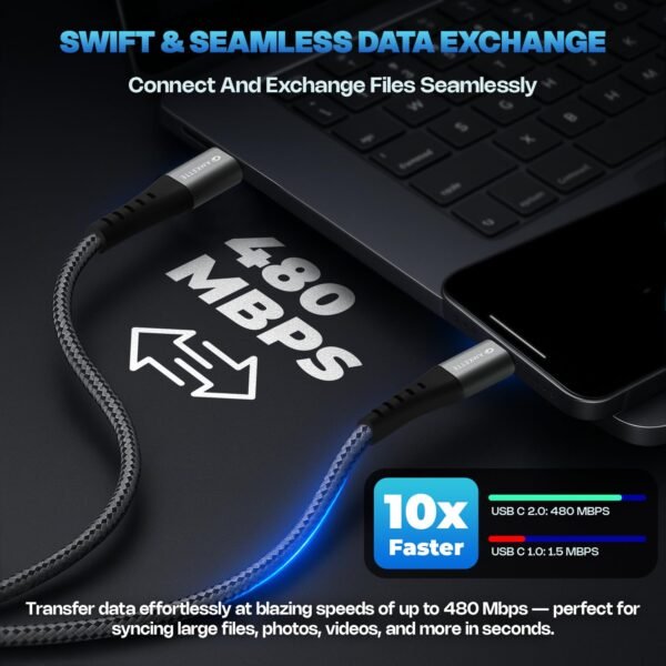 - 𝗖 𝗧𝘆𝗽𝗲 𝗖𝗵𝗮𝗿𝗴𝗲𝗿 𝗖𝗮𝗯𝗹𝗲: Designed for universal compatibility, this C type charger cable ensures efficient charging and high-speed data transfer for most Type C supported devices.