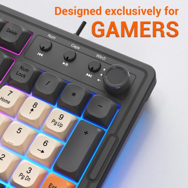 Ant Esports MK800 Pro Wired Mechanical Membrane Backlit Gaming Keyboard with 87 Keys Sturdy and Lightweight Compact Numeric Pad Keyboard for Home Internet Cafe Game Room Offices_ Grey, Beige, Orange