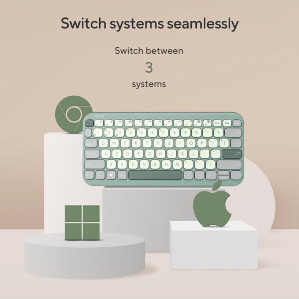 ASUS Marshmallow Kw100 Keyboard, Supports Up to 3 Devices, 1.6Mm Key Travel, Scissor Keys, Compact & Lightweight Keyboard, Bluetooth (Color – Green Tea Latte)