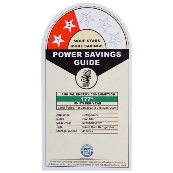 Details: Bluestar 45 Ltr, 2 Star, Mini Refrigerator with Freezer, Direct Cool,Black