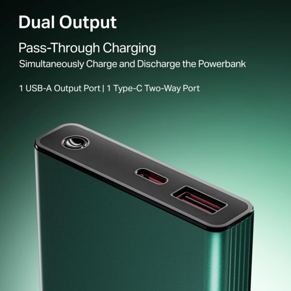 - 1x Input Port & 2x Output Ports: Get hassle-free charging with this power bank that provides a Type-C 2-way port that supports both input and output and another USB-A output port.