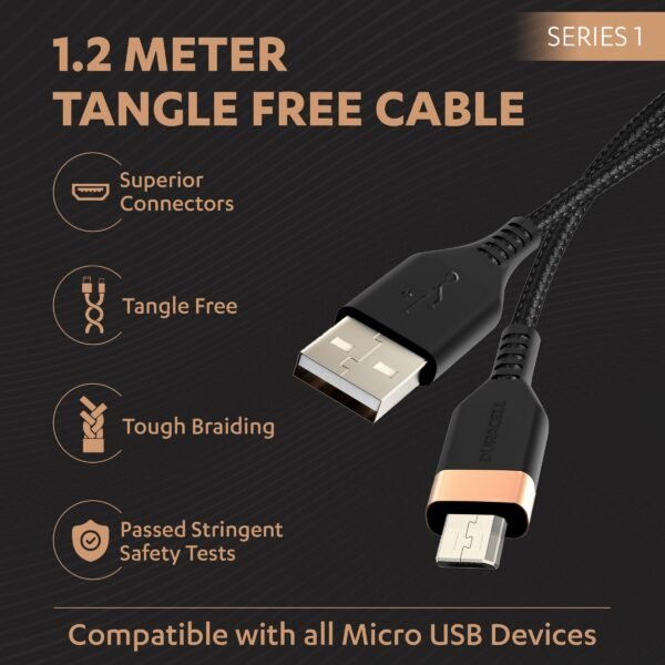 Duracell USB A To Micro Cables, 2A Braided Sync & Quick Charging USB Cable, 3.9 Feet (1.2M), Supports QC 2.0/3.0 Charging, Rapid Data Transmission, Series 1, Black