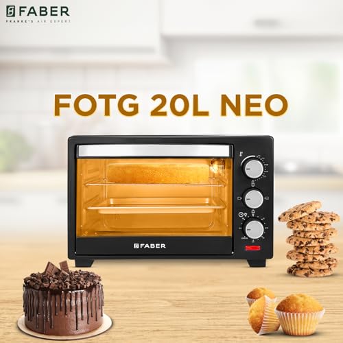 Faber FOTG 20L Neo|1400 Watts OTG|Bake,Toast, Grill| 4 Stage Functions,Upper & Lower Heating|Cool-Touch Handle, Heat Resistant Glass, Indicator Light, Auto-Shut, Ready Bell| Removable Crumb Tray