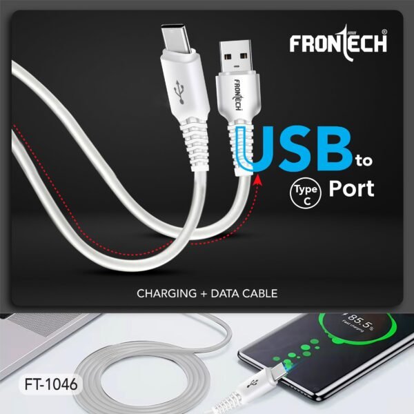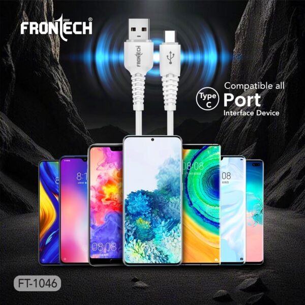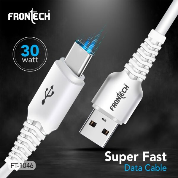 Details: The FRONECH FT-1046 is a high-performance USB to Type-C cable designed for super-fast charging (up to 30W) and rapid data transfer. Crafted with durable PC plastic and a bend-resistant design, this 1.0-meter cable ensures longevity and flexibility for everyday use. Ideal for all Type-C compatible devices, it seamlessly combines efficiency with reliability, making it perfect for charging and syncing your smartphones, tablets, and more.
