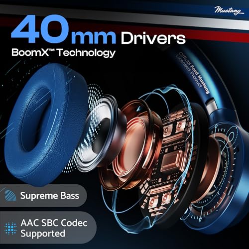 GOBOULT X Mustang Q Over Ear Bluetooth Headphones with 70H Playtime, 40mm Bass Drivers, Zen™ ENC Mic, Type-C Fast Charging, 4 EQ Modes, Bluetooth 5.4, AUX Option, IPX5 Wireless Headphones