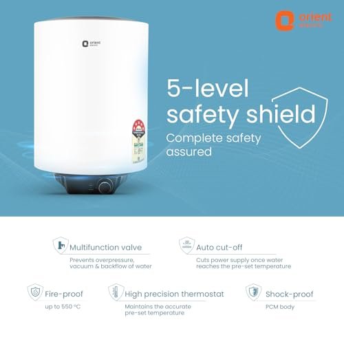• ENHANCED SAFETY WITH MULTIFUNCTION VALVE: The orient water heater comes with a multifunction valve for enhanced safety, as well as a moulded 3-pin plug for better load efficiency.