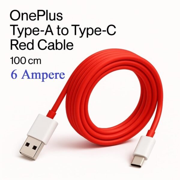 Details: Charge faster and stay powered with this 65W USB to Type-C cable, compatible with all OnePlus models. With up to 6A output, it can charge your device from 0–80% in around 45 minutes (supported devices). Built for long life, it features gold-coated connectors, a double-braided body, high-thickness PVC, and corner-bend protection. The wrap-charge design and protective cover ensure safe and reliable performance every day. Also enjoy 480Mbps high-speed data transfer for quick syncing of photos, videos, and files. Strong, fast, and dependable — backed by a 1-Year Warranty.