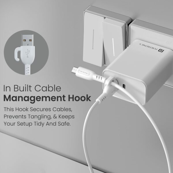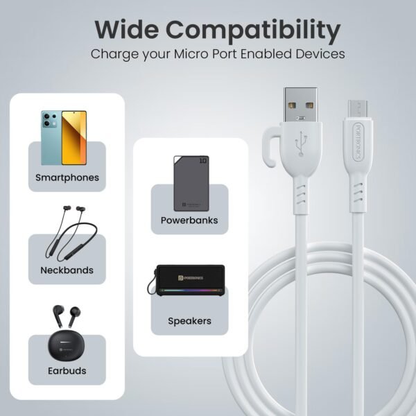 Portronics Konnect Core 3 USB-A to Micro Fast Charging Cable for Smartphones,Tablets, Speakers, Laptops & Other Micro USB Devices,Inbuilt Cable Management Hook,3.0A Max Output,Fast Data Sync(White)