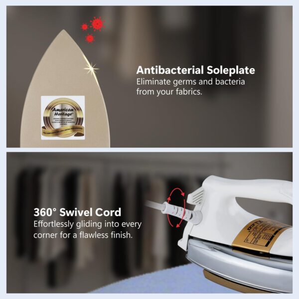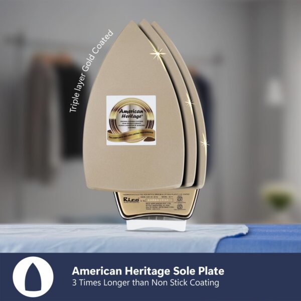- 3 Layer Golden Non-stick Coating – This iron press comes with premium golden American heritage sole-plate coating which is 3 times longer & stronger than nonstick coating that is suitable for all fabric types.