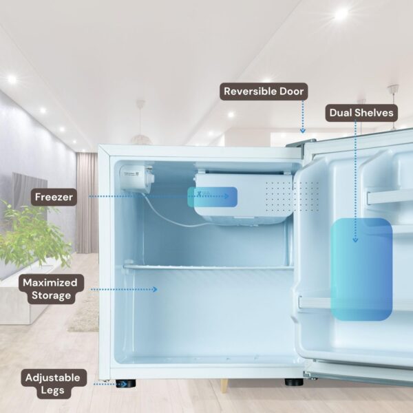 - Space-Saving Design: With its compact dimensions, this refrigerator is ideal for tight spaces like dorms, apartments, or offices, ensuring functionality without taking up too much room.
