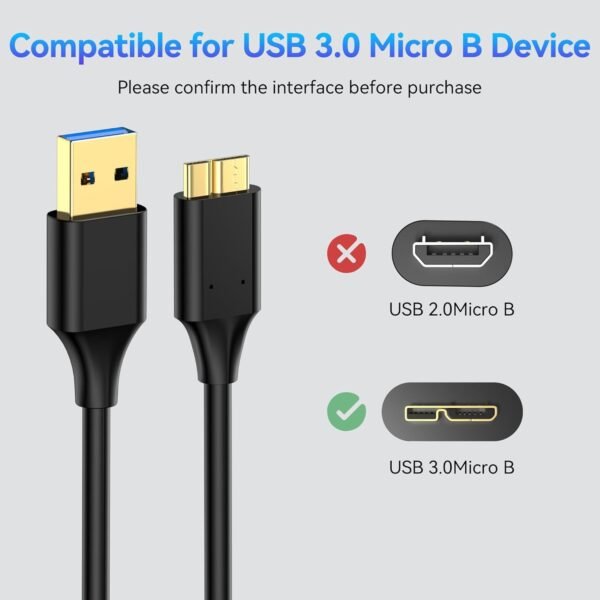 - 5 Gbps Transferring Speed: rts micro USB 3.0 cable supports USB 3.0 standard data transfer rate at up to 5 Gbps, 10x faster than USB 2.0. HD movies can be transferred in just seconds.