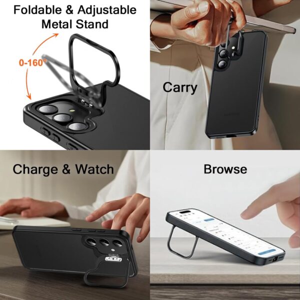 The Built-In Stand is Neatly Slotted around Camera Frame and is Totally Unobtrusive, Allows Unhindered MagSafe Ring Access for Wireless Charging Simultaneously; offers stable & versatile usage like browsing or watching content with utmost convenience.