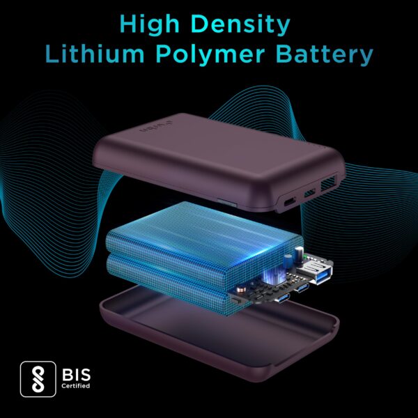 URBN 20000 mAh Premium Nano Power Bank | 22.5W Super Fast Charging | Pocket Size| Dual USB Type-C Input Power Delivery (PD) Output + 1 USB Output for Quick Charge | Two-Way Fast Charge (Purple)