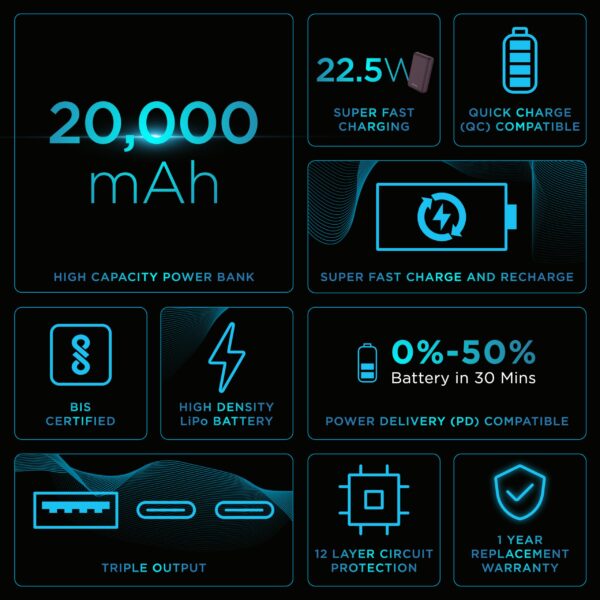 - Advanced Circuit Protection: With 12 layers of circuit protection, this power bank offers complete safety and protection for your devices. Enjoy peace of mind knowing your devices are protected against overcharging, overheating, and other potential hazards.