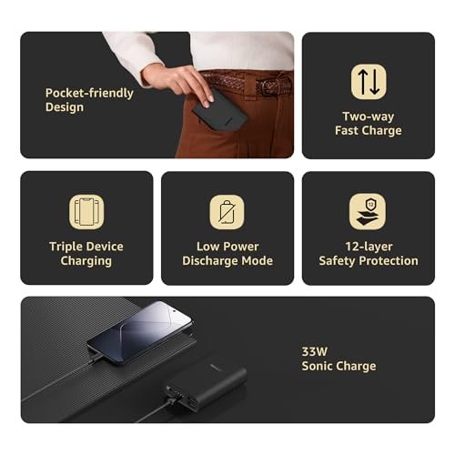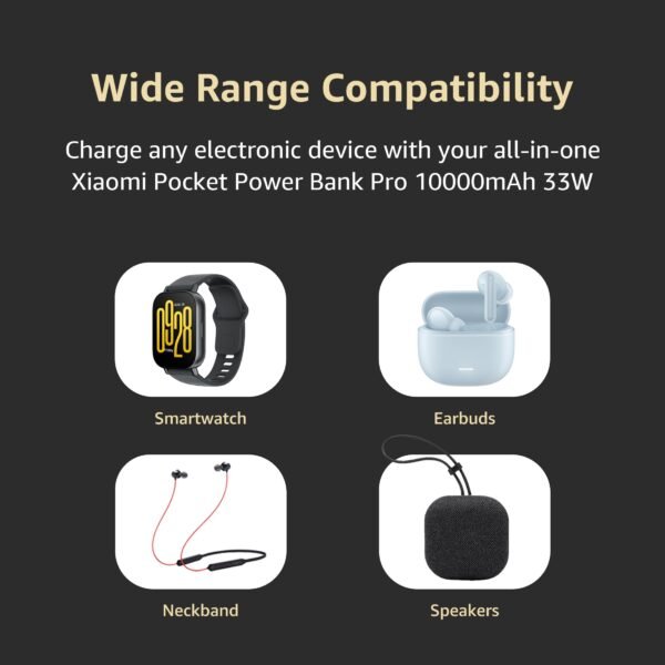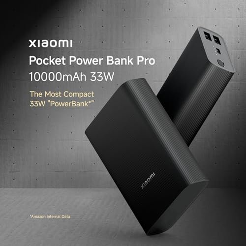 Xiaomi Pocket Power Bank pro 10000mAh 33W Super Fast Charging PD|Compact|Power Delivery|QC 3.0|Type C Input & Output|Triple Output Ports|Black|Supports Android,Apple,Tablets,Earbuds,Watches etc (MI)