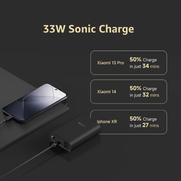 - 33W Fast Charging & Dual Output – Supports up to 33W two-way fast charging via Type-C port, ensuring quick top-ups for smartphones, tablets, and small devices. Includes USB-A port to charge two devices simultaneously.