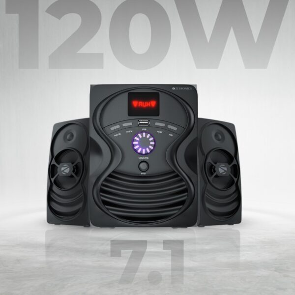 ZEBRONICS Omega 7.1 Home Theatre Speaker with 120W Output, Bluetooth v5.0, USB, AUX, FM Radio, Powerful Subwoofer, LED Display, Remote, Volume & Bass Control