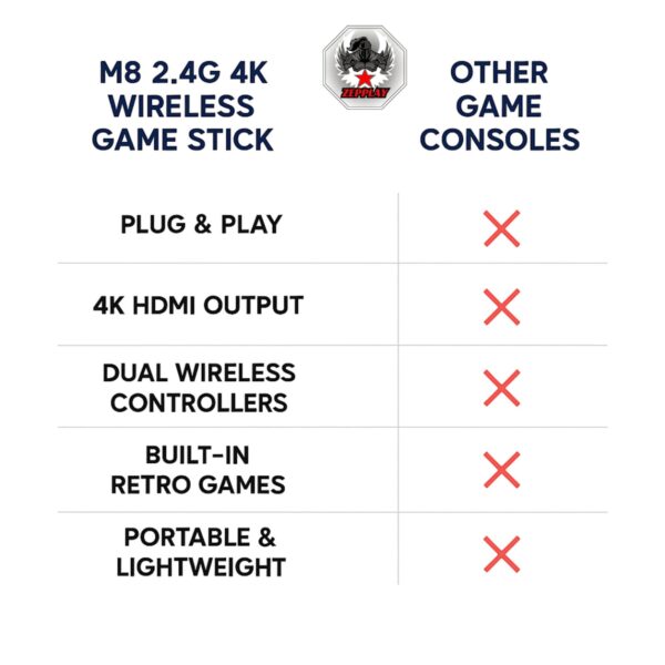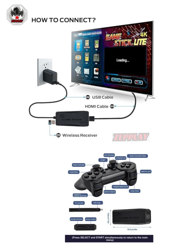- Plug & Play HDMI game console – Simply connect the Zepplay wireless retro game stick to your TV or projector and start gaming instantly. No internet or complicated setup needed, just plug in and play.